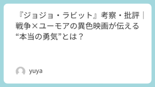 『ジョジョ・ラビット』考察・批評|戦争×ユーモアの異色映画が伝える“本当の勇気”とは? 戦争映画といえば、重厚なドラマ、悲劇的な歴史描写、リアルな戦闘シーンが連想される。しかし『ジョジョ・ラビット』は、そうした既存のイメージを根底から覆す。ナチス・ドイツという最も重い歴史的背景を抱えながら、ブラックユーモアと温かさ、そして深い... 2025.09.24 Uncategorized