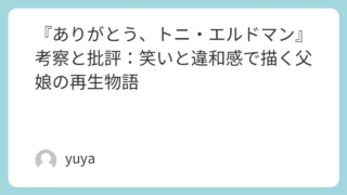 映画『ありがとう、トニ・エルドマン』は、ドイツのマーレン・アーデ監督による異色のヒューマンドラマです。親子の関係性、仕事と自己、ユーモアの効用など、複雑なテーマが2時間40分という長尺の中に緻密に描かれています。今回はこの作品を「考察」「批...