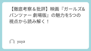 【徹底考察&批評】映画『ガールズ&パンツァー 劇場版』の魅力を5つの視点から読み解く! 2015年に公開された『ガールズ&パンツァー 劇場版』は、TVシリーズからの流れを汲みつつ、映画ならではのスケールと完成度で多くのファンを魅了しました。本作は単なる「萌え×ミリタリー」作品ではなく、ストーリーの構成力、キャラクター描写、戦闘... 2025.09.21 Uncategorized