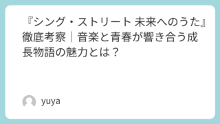 『シング・ストリート 未来へのうた』徹底考察|音楽と青春が響き合う成長物語の魅力とは? 『シング・ストリート 未来へのうた』(2016年)は、ジョン・カーニー監督が手がけた青春音楽映画であり、80年代のアイルランドを舞台に、音楽を通じて自己表現を見出していく少年の姿を描いた作品です。本作は、ノスタルジックな音楽と瑞々しい青春ド... 2025.09.21 Uncategorized