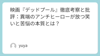 映画『デッドプール』徹底考察と批評:異端のアンチヒーローが放つ笑いと苦悩の本質とは? 映画『デッドプール』は、2016年の公開以来、マーベル映画の中でも異色の存在として多くのファンを魅了してきました。過激な言動、第四の壁を破るメタ的演出、そしてブラックユーモア満載のストーリー展開など、従来のスーパーヒーロー映画とは一線を画す... 2025.09.21 Uncategorized