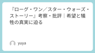 『ローグ・ワン/スター・ウォーズ・ストーリー』考察・批評|希望と犠牲の真実に迫る スター・ウォーズシリーズのスピンオフ作品として2016年に公開された『ローグ・ワン/スター・ウォーズ・ストーリー』は、従来の“ジェダイ”や“フォース”とは異なる視点から描かれた異色の一本です。エピソード4の冒頭につながる形で展開する物語は、... 2025.09.21 Uncategorized