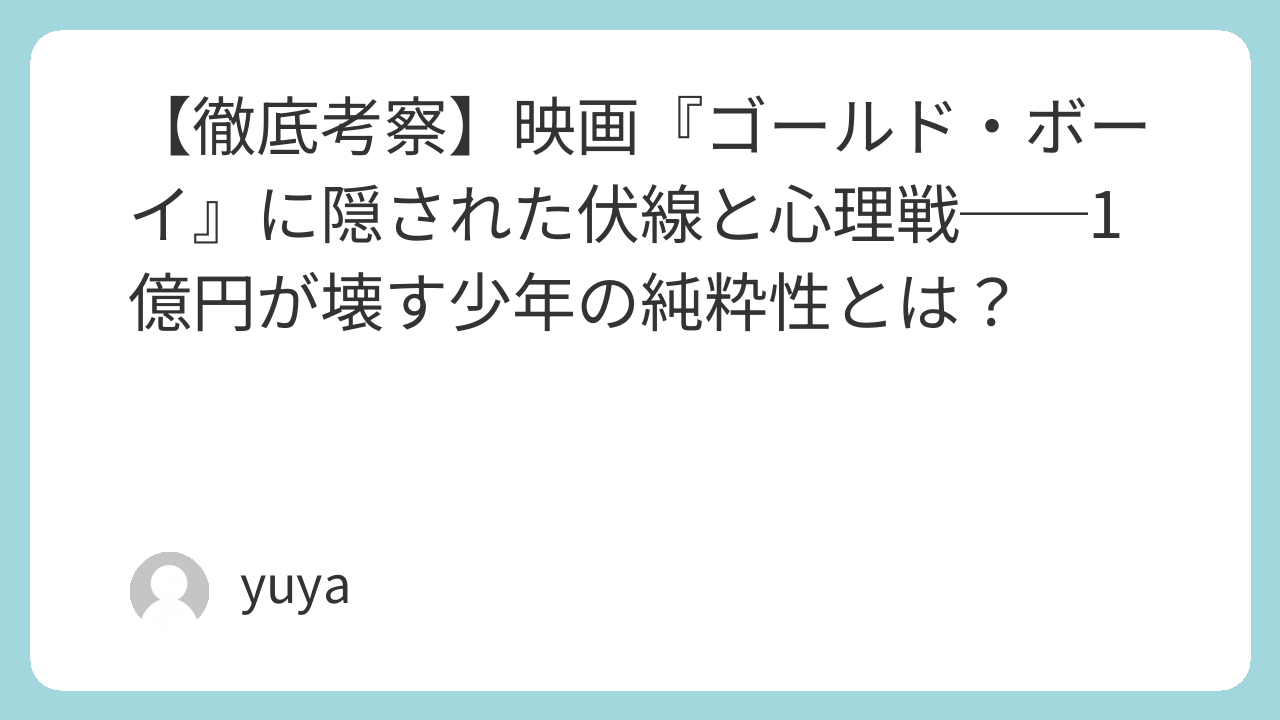 近年、日本映画の中でも異彩を放つ作品として注目を集めた『ゴールド・ボーイ』。沖縄を舞台に、少年が「拾った1億円」によって人生を狂わせていく本作は、ただのサスペンスでもヒューマンドラマでもありません。巧みに張られた伏線、複雑なキャラクター、そして社会的メッセージが交錯する重層的な構造に、多くの観客が衝撃を受けました。