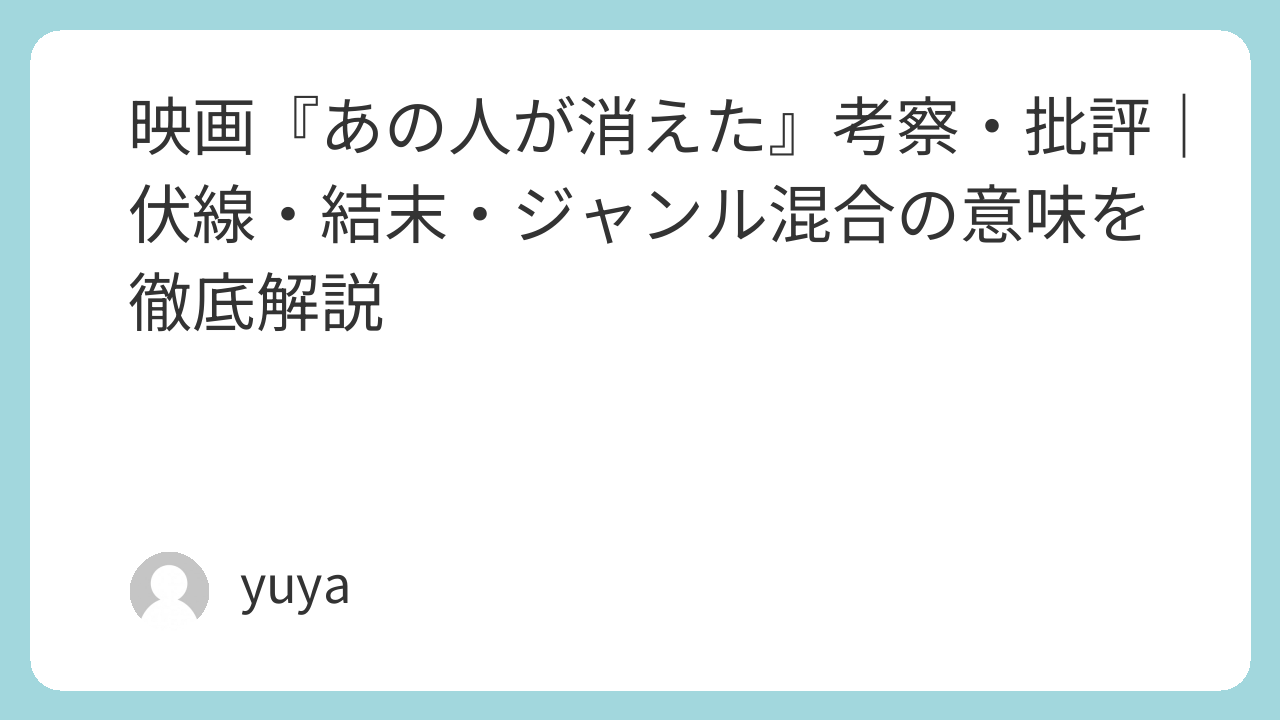 映画『あの人が消えた』考察・批評|伏線・結末・ジャンル混合の意味を徹底解説