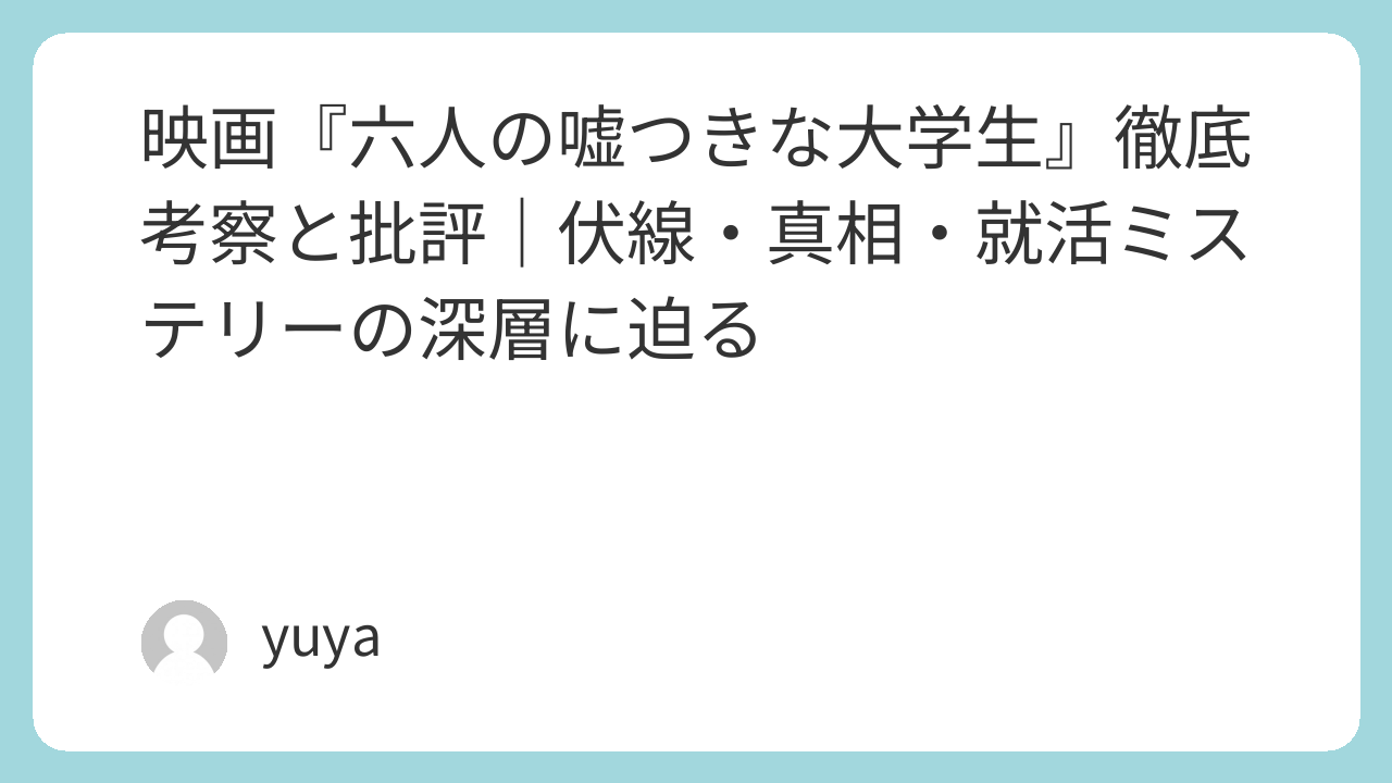 近年、就職活動を題材にしたフィクション作品は増えつつありますが、『六人の嘘つきな大学生』は、その中でも群を抜いて異彩を放つ心理ミステリー作品です。本作は、就活という現代的テーマに“嘘”と“告発”という緊張感のある要素を絡めたサスペンス構成で、多くの観客を引き込んでいます。本記事では、物語の構造やキャラクターの分析、原作との比較、さらには観客からの評価も踏まえながら、本作の魅力と限界について考察・批評していきます。