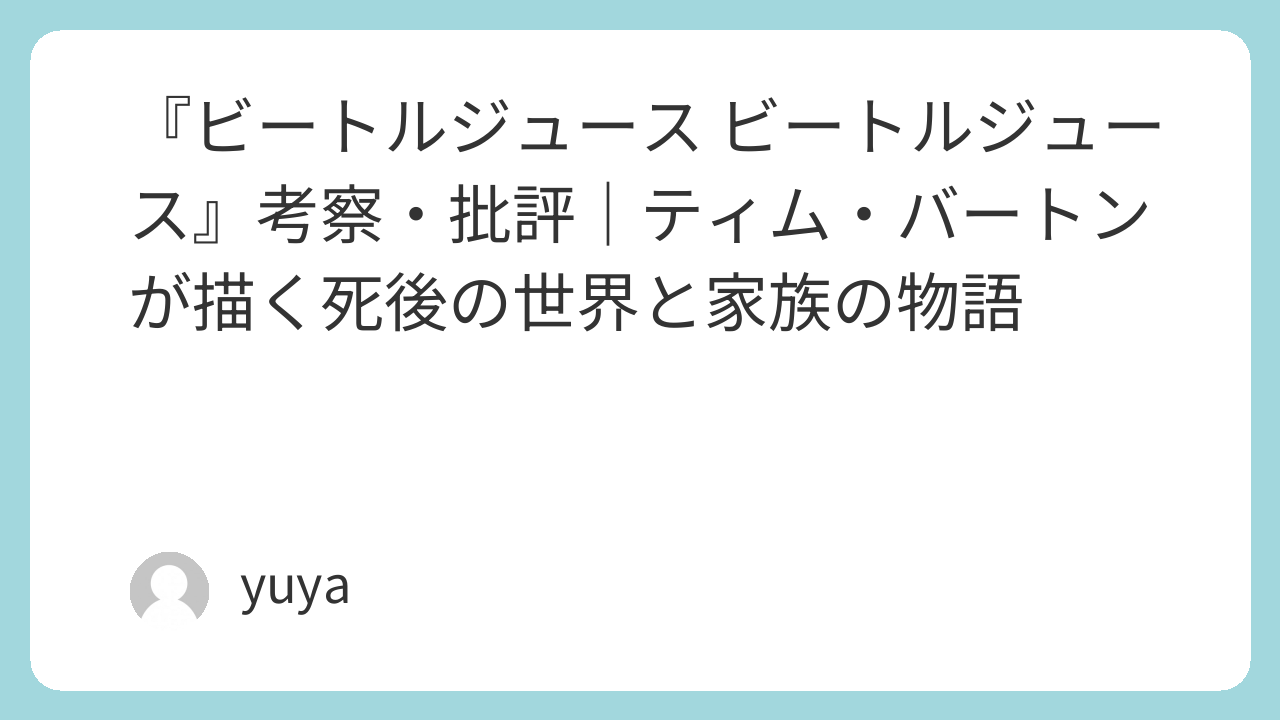 ビートルジュースの物語は、表面上はホラー・コメディでありながら、実は**「生と死の狭間」「家族との関係性」「この世への執着」**といったテーマが根底に流れています。