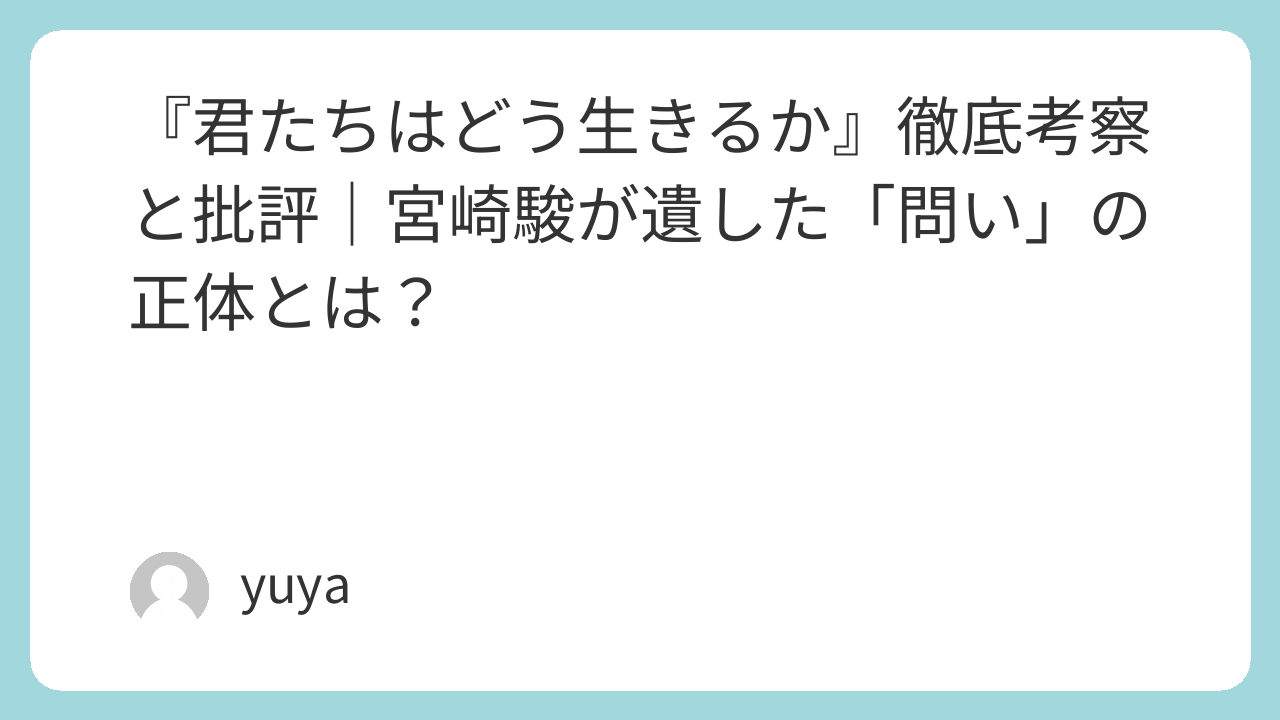 『君たちはどう生きるか』は、明快なストーリーや解釈を拒否することで、観る者一人ひとりに「自ら考え、選び取る」ことを促す作品です。評価が分かれるのは当然であり、それこそが宮崎駿が本作に込めた最大のメッセージなのかもしれません。この映画をどう受け取るか、それこそが「君(たち)はどう生きるか」という問いへの答えなのです。