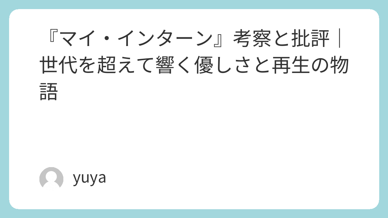 この記事では、『マイ・インターン』をただの“癒し映画”として終わらせず、その背後にある構造やテーマに深く切り込んだ考察・批評を試みます。