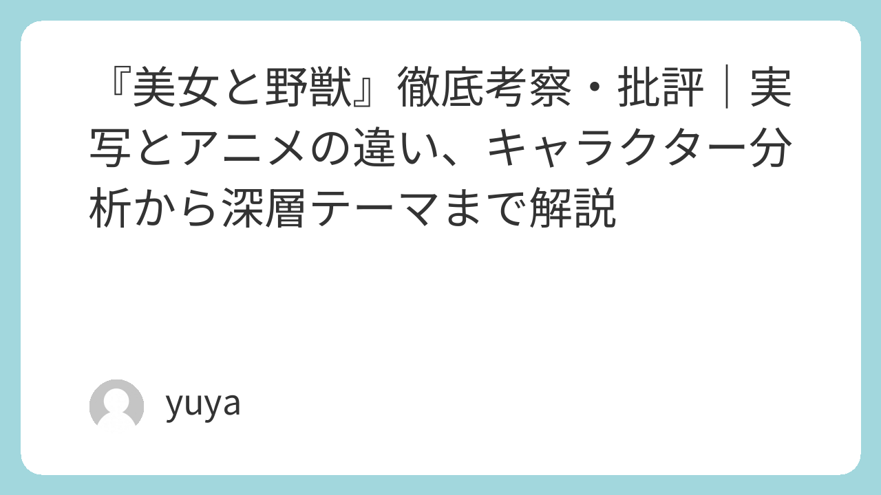 - 野獣の背景も深掘りされ、彼がどのような育ちで「傲慢さ」を身につけたのかに言及される。