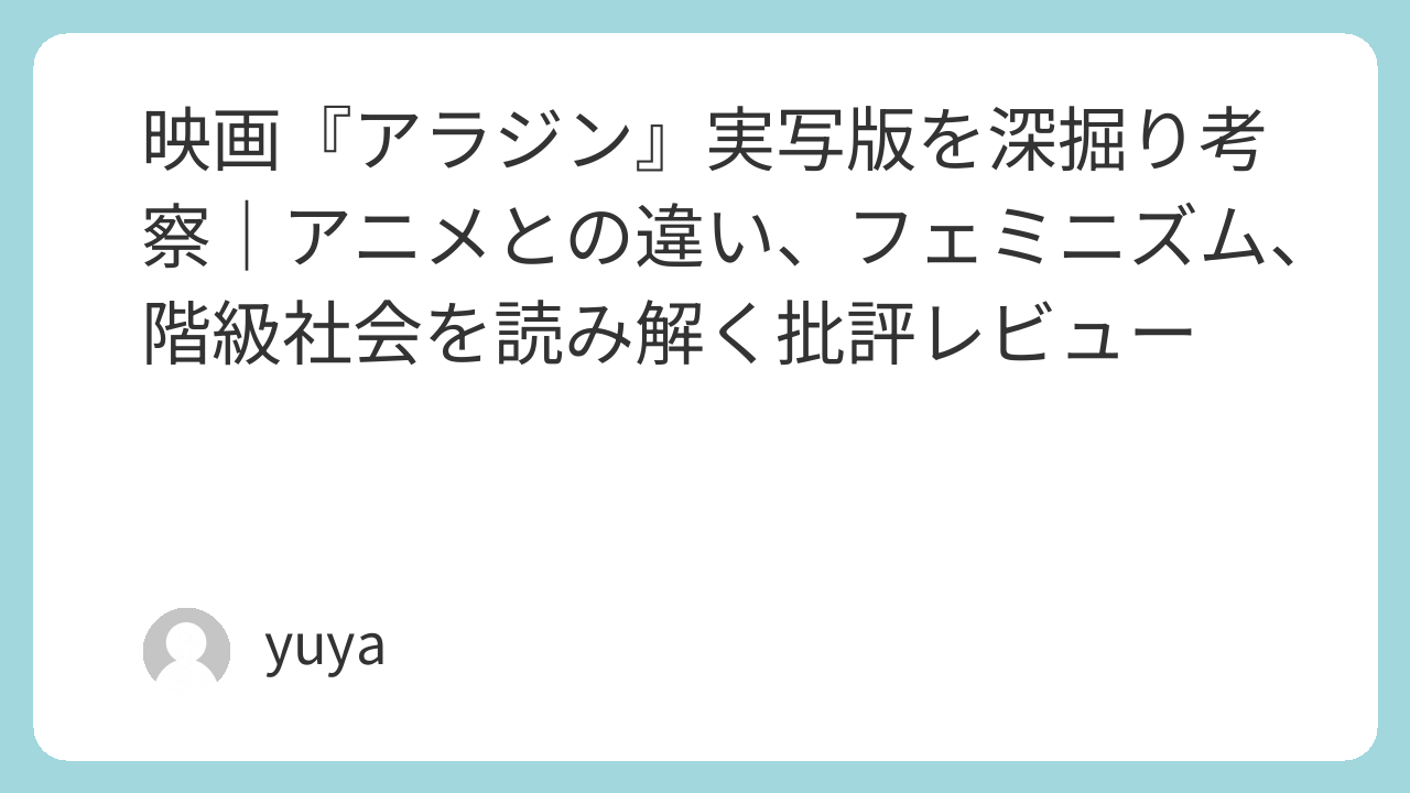 映画『アラジン』実写版を深掘り考察|アニメとの違い、フェミニズム、階級社会を読み解く批評レビュー