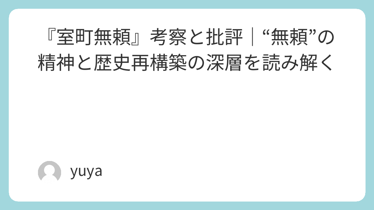 『室町無頼』考察と批評|“無頼”の精神と歴史再構築の深層を読み解く