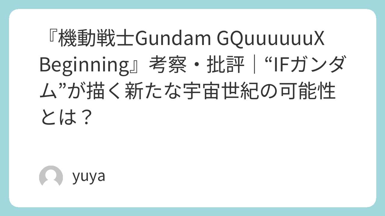 『GQuuuuuuX Beginning』は、ガンダムという長大な物語世界における新たな「可能性の芽」である。考察と批評が必要な複雑な作品だが、それだけにファンの想像力と知的好奇心を刺激する内容となっている。表層的な評価ではなく、背景にある構想や哲学に目を向けることで、本作の本当の魅力が見えてくるだろう。
