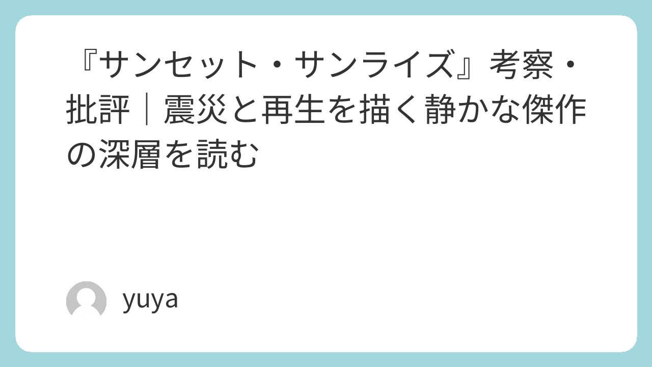 『サンセット・サンライズ』考察・批評|震災と再生を描く静かな傑作の深層を読む