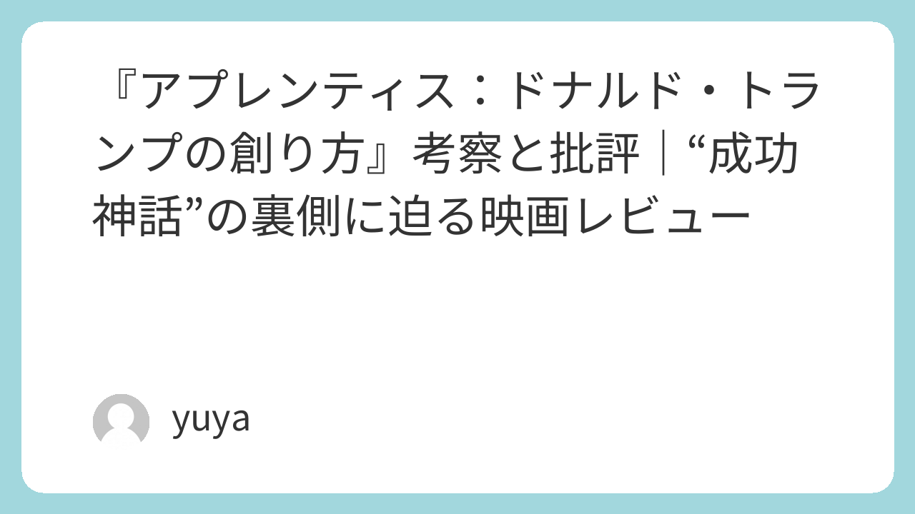 2024年カンヌ国際映画祭で話題を呼んだ映画『アプレンティス:ドナルド・トランプの創り方』は、単なる伝記映画ではなく、「いかにしてアメリカを代表する人物が“創られた”のか」を鋭く描き出す作品です。本記事では、その物語構成、キャラクター描写、演技、脚色の手法、そして社会的反響までを多角的に考察し、批評を行います。