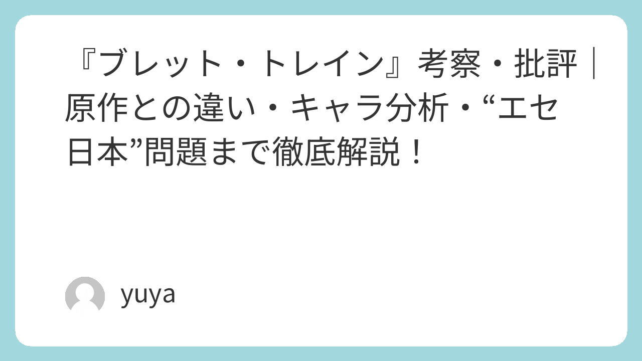 『ブレット・トレイン』考察・批評|原作との違い・キャラ分析・“エセ日本”問題まで徹底解説!