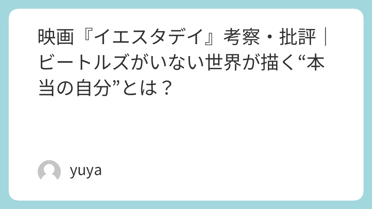 この記事では、映画好きの視点から『イエスタデイ』を深掘りし、物語構造やキャラクター、文化的意義などを考察・批評していきます。映画をすでに観た方はもちろん、これから観る予定の方にも、新しい視点を提供できれば幸いです。