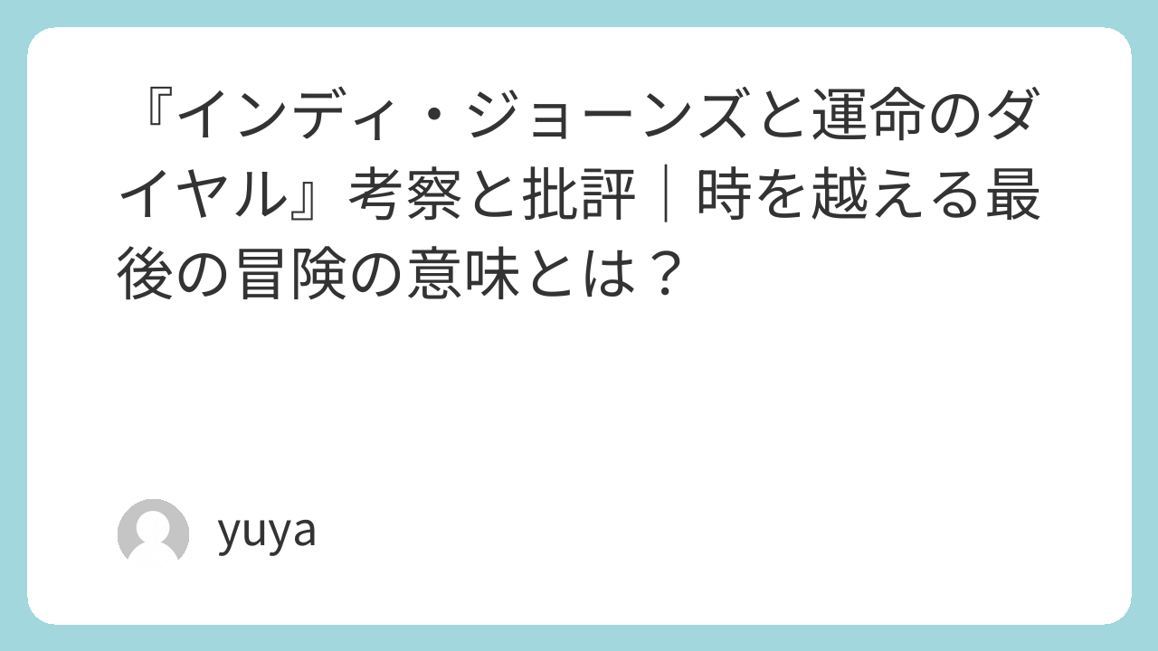 『インディ・ジョーンズと運命のダイヤル』は、単なる冒険映画としてだけでなく、「時間」という不可逆なテーマをどう描くかに挑んだ作品でした。年老いたヒーローの姿に賛否は分かれたものの、過去の偉大さと未来への継承を同時に描くという点で、シリーズを締めくくるにふさわしい一本です。観る者に“今をどう生きるか”を問う、本作はまさに時代を超える冒険そのものです。