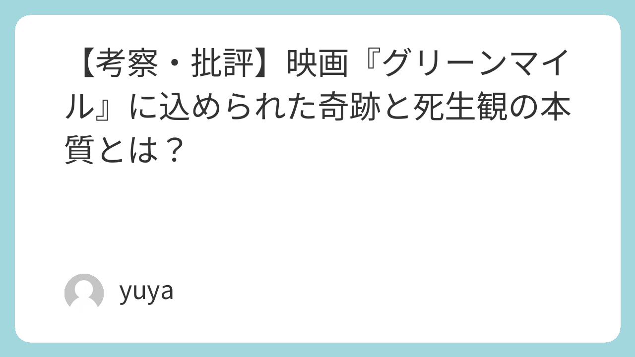 本記事では、『グリーンマイル』の物語構造やキャラクター描写、作品が内包する哲学的テーマに着目し、考察と批評を行います。