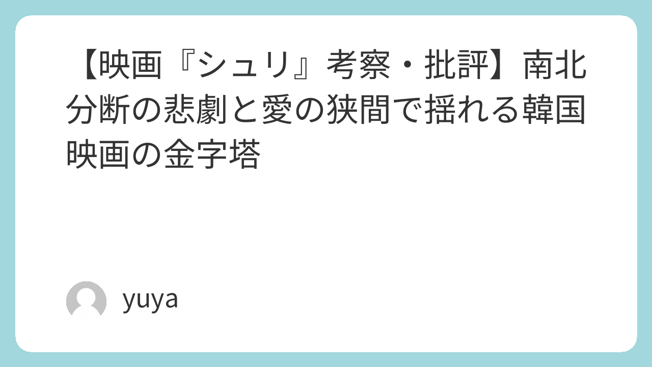 1999年に韓国で公開され、空前のヒットを記録した映画『シュリ』は、韓国映画界における歴史的転換点とも言える作品です。アクション映画としての娯楽性を持ちながら、南北分断という重いテーマを内包し、国家と個人、愛と任務の葛藤を描き出しました。本記事では、物語構造・象徴・人物造形・演出・評価の変遷に至るまで、深掘りしていきます。