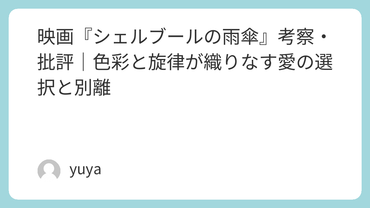 『シェルブールの雨傘』は、単なる悲恋の物語ではなく、音楽、映像、歴史、そして人生の選択という多層的なテーマが織り込まれた、極めて奥深い作品です。ラストの一瞬まで観客に問いを投げかけ続けるその姿勢は、時代を超えて共感と議論を呼び起こします。今こそ、再びこの名作に触れてみる価値があります。