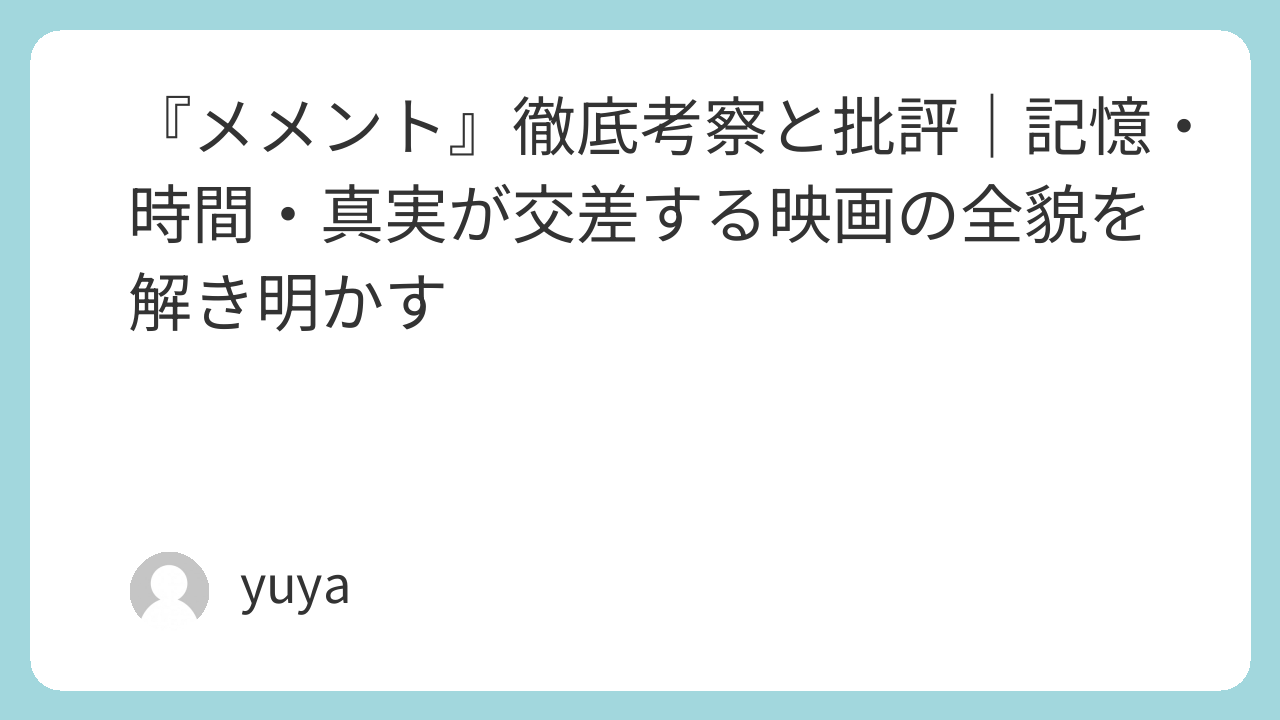 本記事で紹介したように、物語構造の仕掛け、記憶の哲学、登場人物の多重性、伏線の妙、そして批評的評価まで、あらゆる角度から語るに値する作品です。1回目の視聴で「混乱」し、2回目以降で「再構築」するという体験こそが、本作の真骨頂なのです。