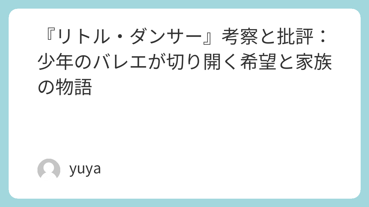 『リトル・ダンサー』は、社会背景・家族関係・ジェンダー意識・芸術表現など、多面的なテーマを内包する傑作です。少年の成長物語としてだけでなく、観る者に自らの価値観を問い直させる力を持った作品といえるでしょう。考察・批評という切り口から再び向き合うことで、その奥行きの深さがより一層浮かび上がってきます。