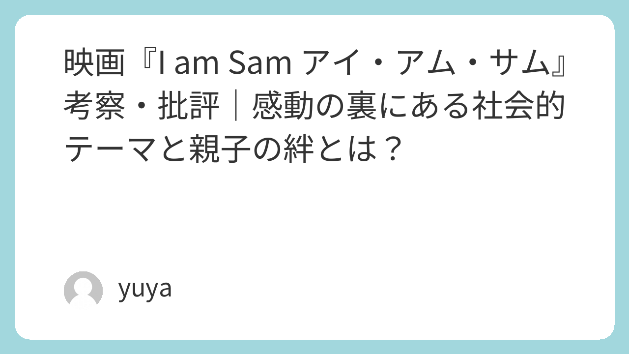 『I am Sam』は、確かに涙を誘う感動作として、多くの観客の心を掴みました。しかしその本質は、社会が定義する「親の条件」や、「家族の形」、さらには「障害と共に生きるとはどういうことか」といった、根源的な問いを含んでいます。