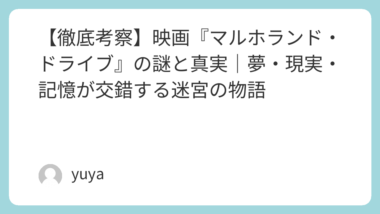 【徹底考察】映画『マルホランド・ドライブ』の謎と真実|夢・現実・記憶が交錯する迷宮の物語