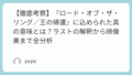 構造、キャラクター、演出、象徴性、結末のすべてにおいて計算され尽くされており、一度観ただけでは理解しきれない余韻と問いを残す作品と言えるでしょう。だからこそ、多くの人が繰り返し考察し、語りたくなるのです。