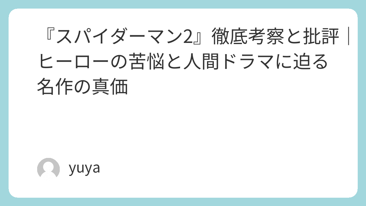 本記事では、物語構造やキャラクター、象徴的なシーンなどを考察しながら、『スパイダーマン2』の魅力を批評的視点で掘り下げていきます。