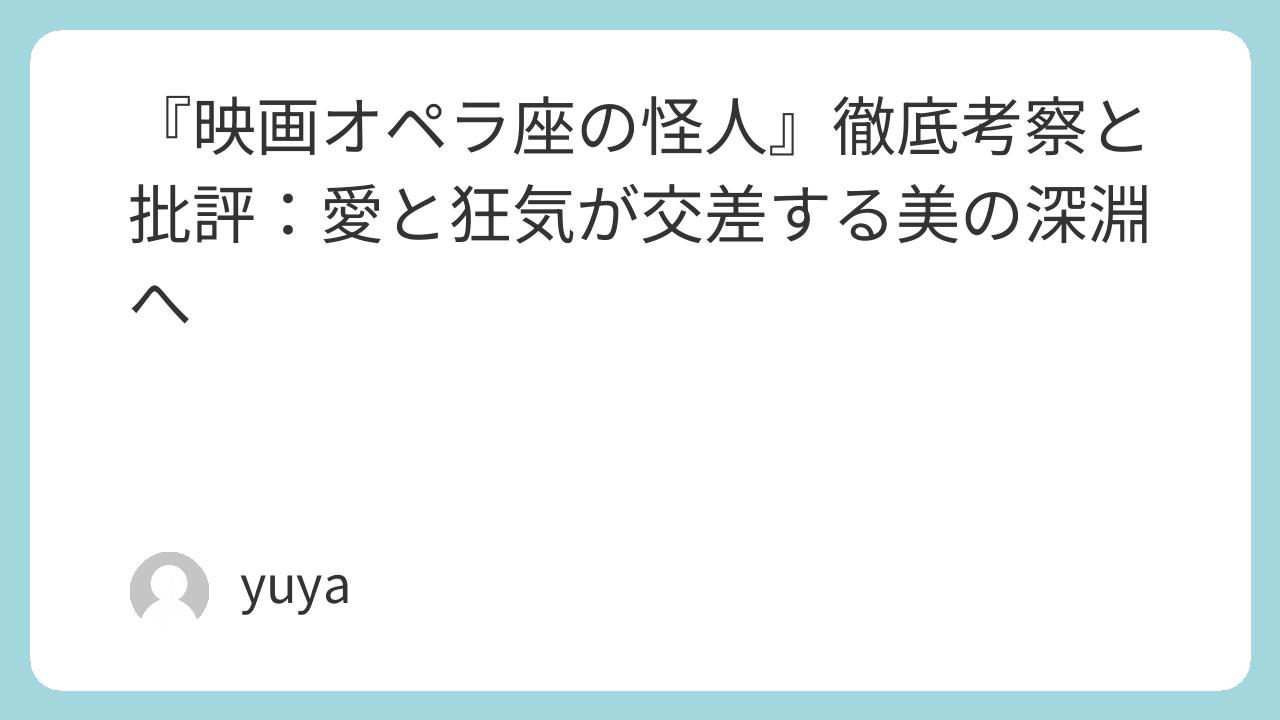 ガストン・ルルーの小説を原作に、アンドリュー・ロイド=ウェバーの手で舞台ミュージカルとして世界的な成功を収めた『オペラ座の怪人』。2004年には、そのミュージカル版を映画化した作品が公開されました。豪華絢爛な舞台美術と荘厳な音楽、そして何より登場人物たちの情熱的で痛ましい愛の物語は、多くの観客の心を打ちました。本記事では、この映画版『オペラ座の怪人』を中心に、演出・登場人物・テーマ・演出技法・結末など多角的な視点から考察・批評を試みます。