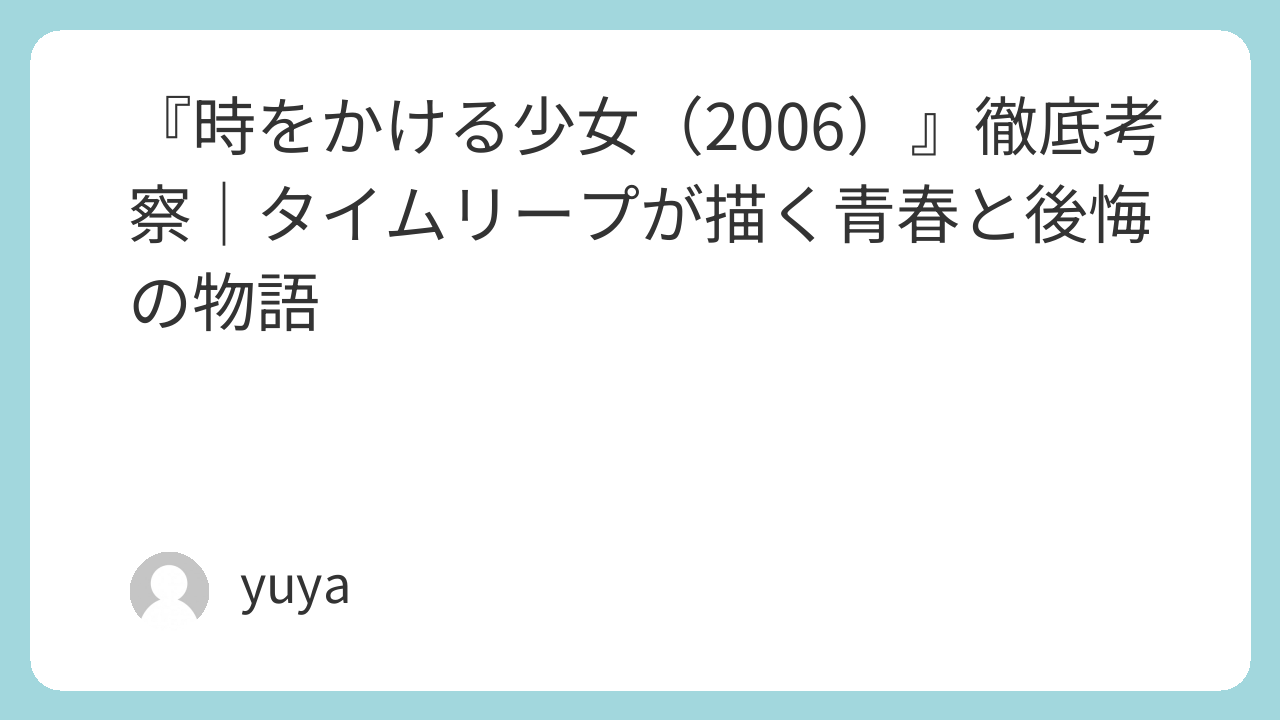 『時をかける少女(2006)』は、タイムリープという非現実的な設定を通じて、誰もが経験する“後悔”や“選択の難しさ”を描いた青春映画の傑作です。登場人物たちの関係性、演出美、原作との関係など、あらゆる側面が有機的に絡み合い、一度観ただけでは味わい尽くせない深みを持っています。
