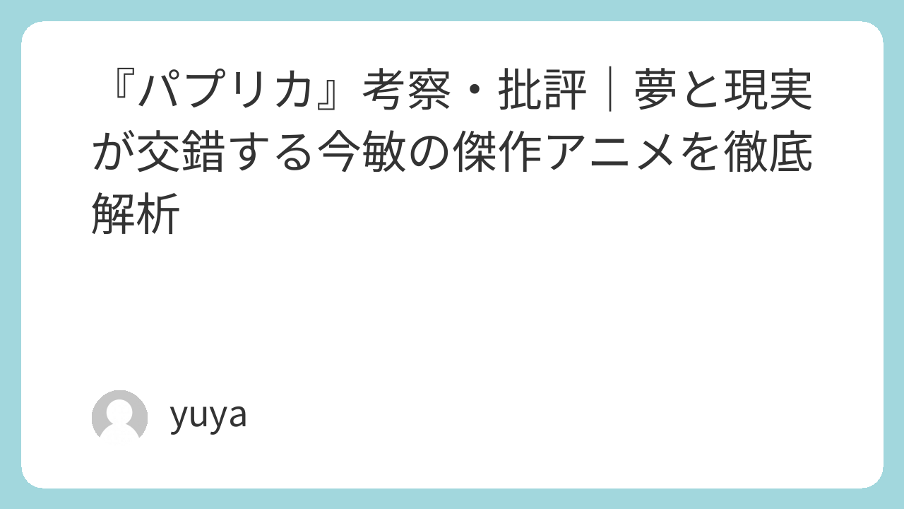 2006年に公開された今敏監督によるアニメ映画『パプリカ』は、観る者に強烈な印象を残す作品だ。筒井康隆の同名小説を原作とし、「夢」をテーマに描かれたその世界観は、鮮烈な映像美と複雑な物語構造によって、国内外の映画ファンを魅了してきた。本作は、ただのエンタメ作品に留まらず、精神分析、哲学、そして現代社会の在り方までを問いかける深いメッセージを内包している。