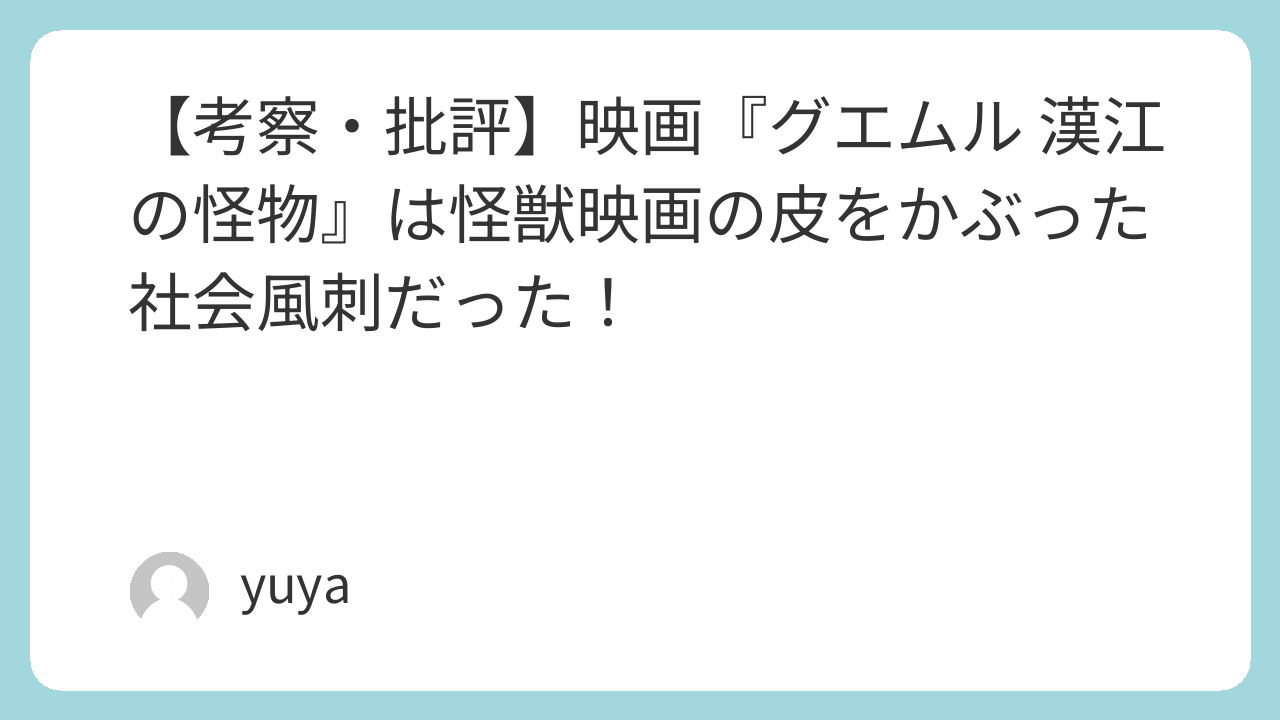 【考察・批評】映画『グエムル 漢江の怪物』は怪獣映画の皮をかぶった社会風刺だった!