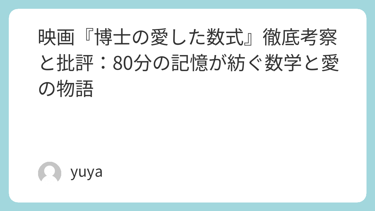 『博士の愛した数式』は、時間、記憶、数学、人との関係というテーマを、静かで詩的な語り口で描いた名作です。派手な展開はないものの、静かに心を打つ演出と人間の本質を浮かび上がらせる脚本が、多くの観客の記憶に残る理由です。数字に宿る感情、そして人との絆のかたちを、じっくり味わうにふさわしい一作です。