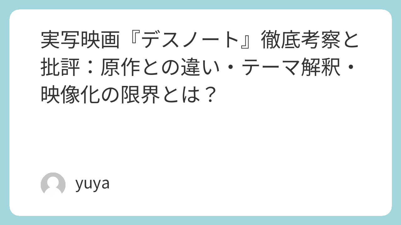 映画版『デスノート』を批評的に見る際に大切なのは、**「原作再現」ではなく「映像化による再解釈」**として受け止める視点です。
