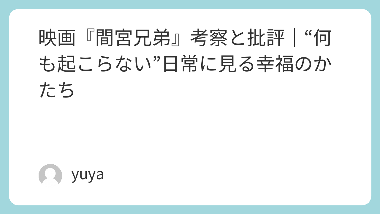 映画『間宮兄弟』考察と批評|“何も起こらない”日常に見る幸福のかたち