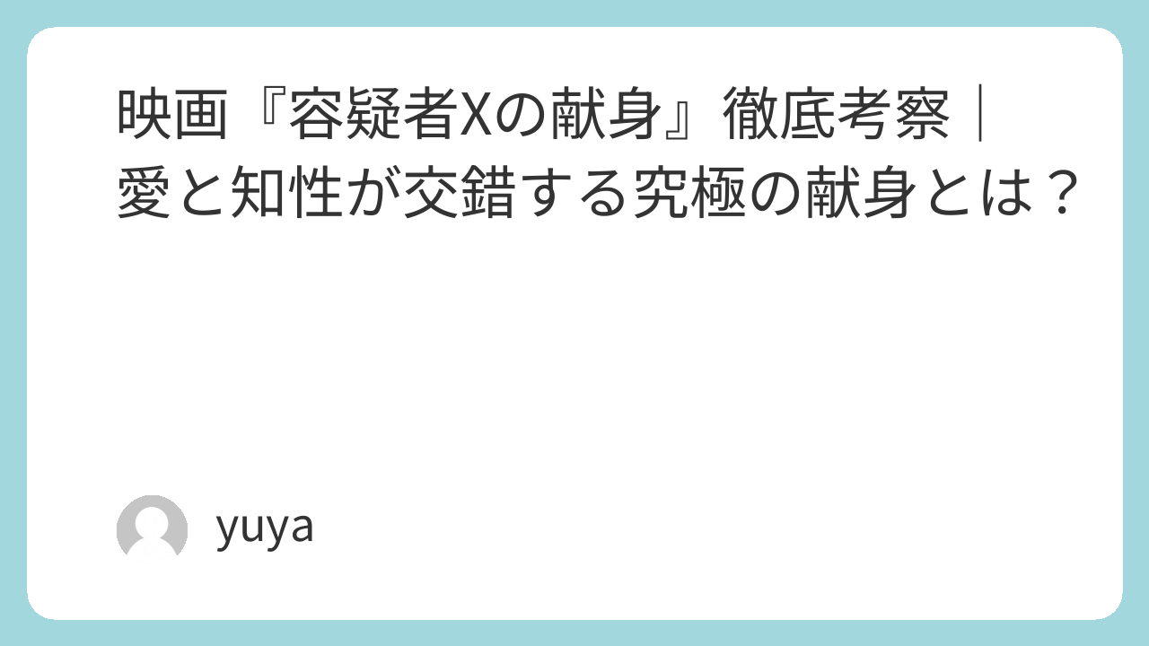 『容疑者Xの献身』は、ただのミステリーでも恋愛映画でもありません。「知性で構築された愛」という異質なテーマを真正面から描き切った希有な作品です。緻密な構成、美しい演出、深い心理描写によって、観る者の倫理観や感情を揺さぶり続けます。