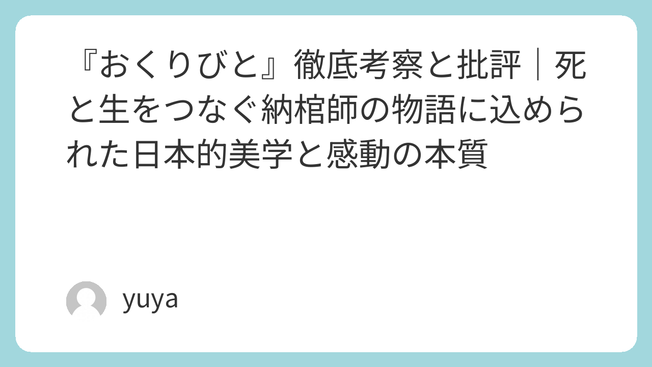 映画『おくりびと』は、「死」という重いテーマを扱いながらも、決して押しつけがましくなく、静かに、しかし力強くメッセージを届けてくれます。