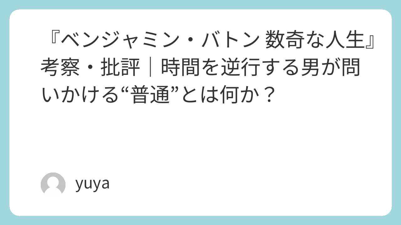 「普通」とは、決められた人生の流れに沿うことではなく、その人がその人らしく生きることなのかもしれません。そう考えると、ベンジャミンの「数奇な人生」こそが、最も“人間らしい”生き方の象徴と言えるでしょう。
