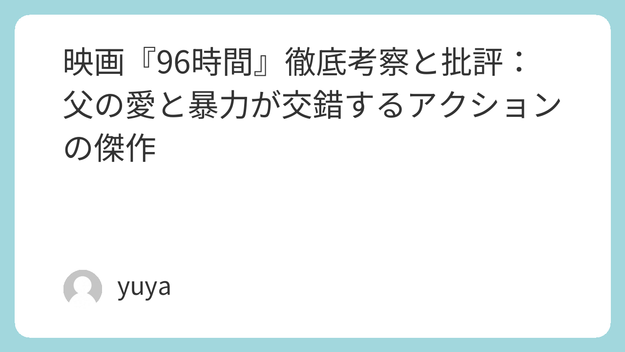 映画『96時間』徹底考察と批評:父の愛と暴力が交錯するアクションの傑作