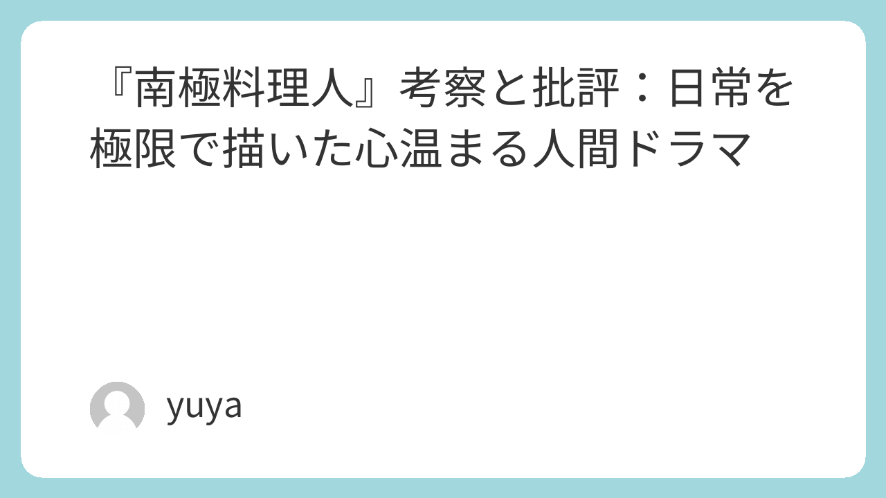 『南極料理人』は、派手な事件や感動的なクライマックスがある映画ではありません。しかし、極限の地で“普通”を営む男たちの姿を丁寧に描き出すことで、逆に“日常”の尊さと、人間のつながりの温かさを強く感じさせる作品です。