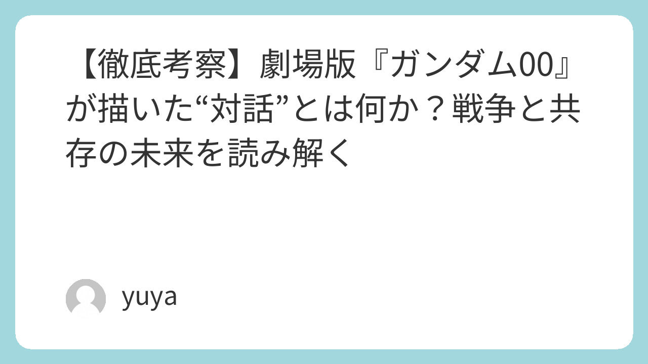 映画『ガンダム00』は明確な悪役を持たず、「分かり合えない存在」と向き合うことの難しさを描いています。そしてその問いは、観客自身に向けられています。