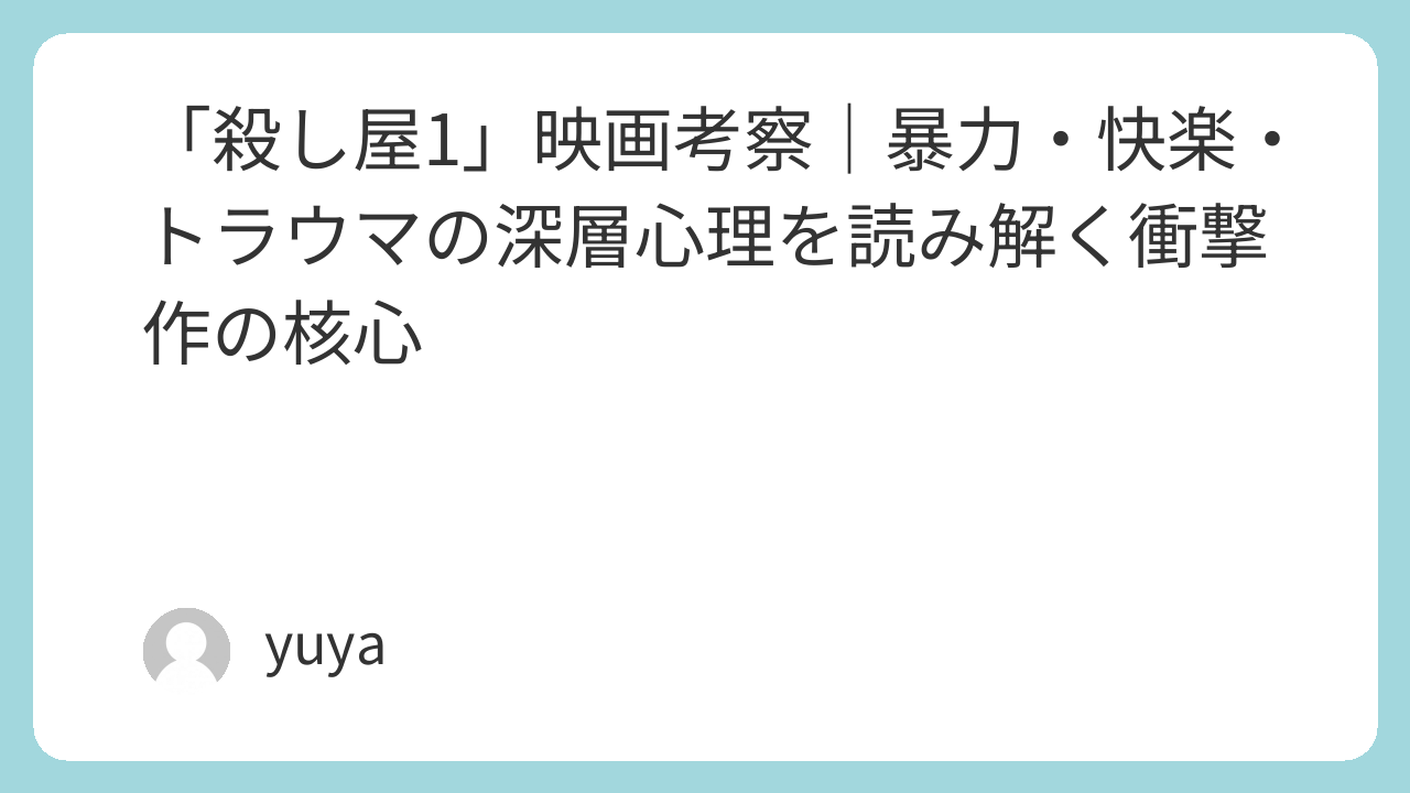 『殺し屋1』は、ただのグロ映画ではなく、「暴力とは何か」「快楽と痛みの境界」「人間の本性とは」といった深いテーマを孕んだ作品です。三池崇史監督の演出、キャラクターの心理描写、抽象的なストーリーテリングが複雑に絡み合い、観る者に多層的な解釈を求めます。この作品の真価は、観終わった後に“考え続けさせられること”にこそあります。