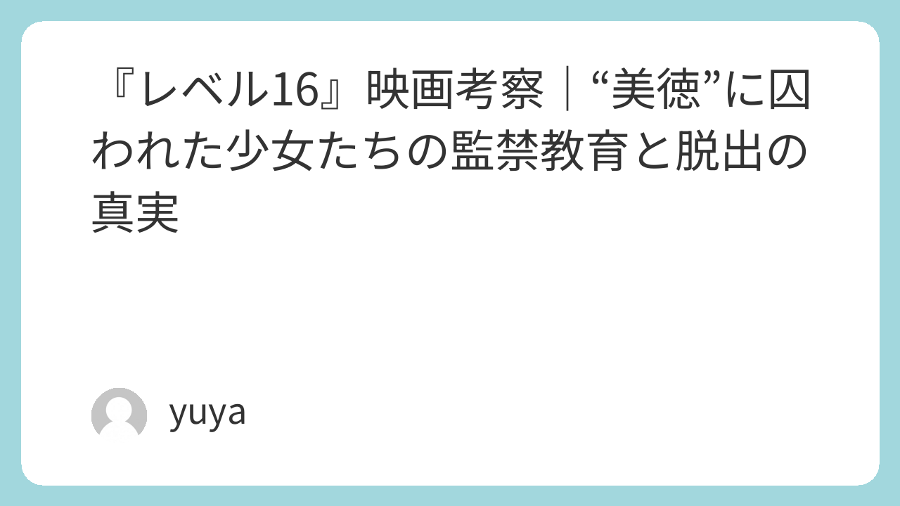『レベル16』は、女性が「美徳」を内面化することで社会に受け入れられるという価値観に、根本的な疑問を投げかける作品です。その物語は極端な舞台設定を通して、現実社会にも通じる構造的な問題を浮かび上がらせています。