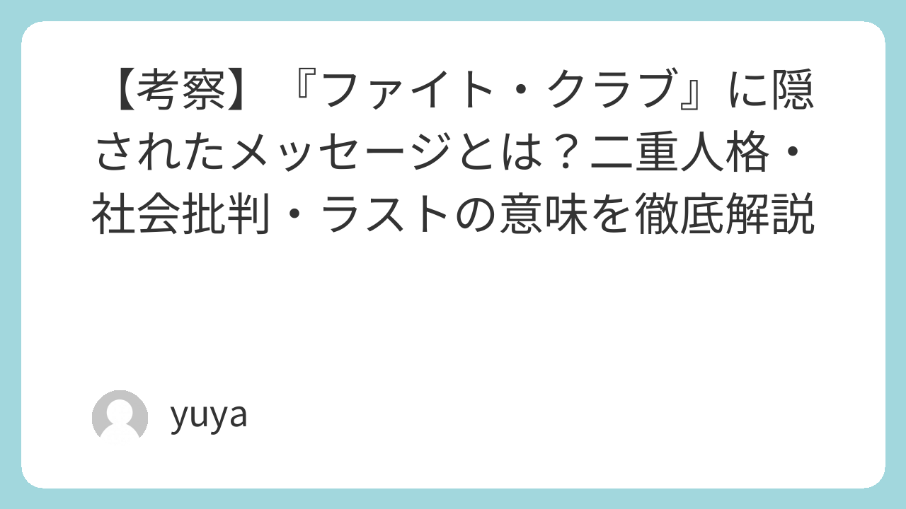 『ファイト・クラブ』は、単なるサスペンス映画ではありません。そこには、現代社会の矛盾、アイデンティティの分裂、消費文化への批判など、多くのテーマが複層的に織り込まれています。特に、再視聴によってその本質が明らかになるという点で、非常に深い“考察向き”の映画です。
