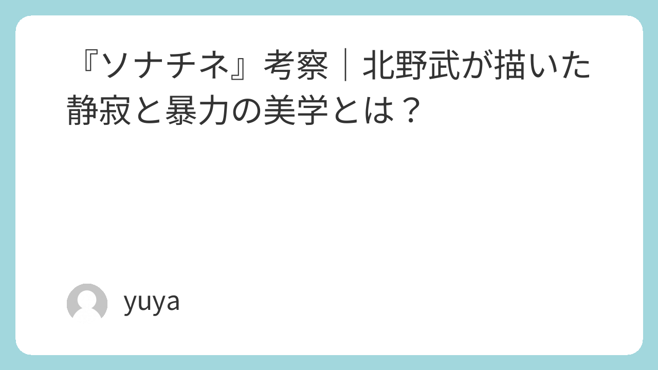 『ソナチネ』は、一見すると静かで淡々としたヤクザ映画ですが、その奥には「人間の孤独」「死の美学」「暴力の空虚さ」といった重厚なテーマが織り込まれています。セリフよりも間、説明よりも余白を重視する北野武の演出によって、観る者に深い余韻を残す本作は、まさに“語り継がれるべき作品”です。