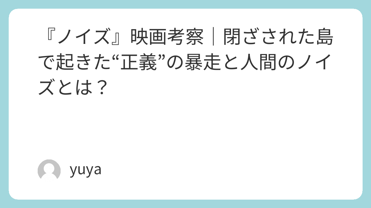 映画『ノイズ』は、単なるサスペンスではなく、現代社会に潜む集団心理、正義と悪の曖昧さ、そして人間の内面にある「ノイズ(乱れ・異質さ)」に向き合う作品です。