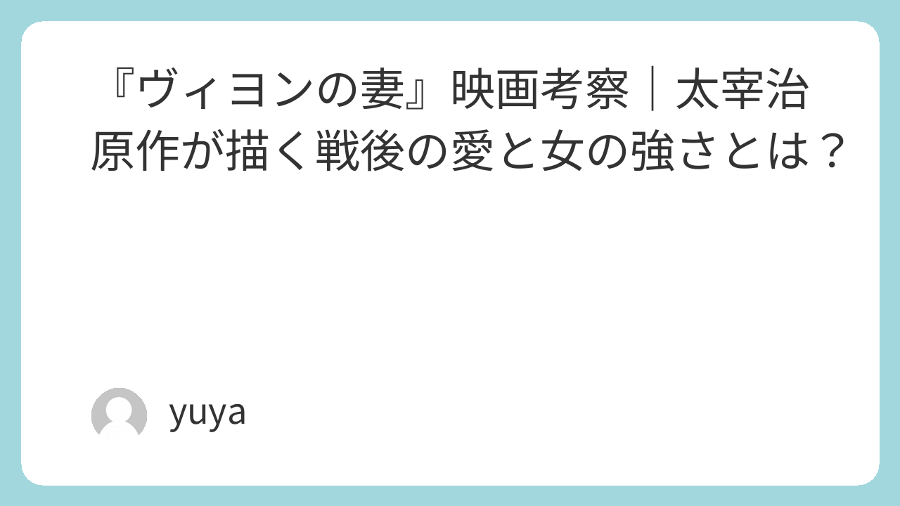 『ヴィヨンの妻』は、太宰治が1947年に発表した短編小説が原作です。小説では、妻の一人称視点で語られる形式を通じて、愛と憎しみの入り混じる夫婦関係、そして女性の主体的な生き方を淡々と描いています。