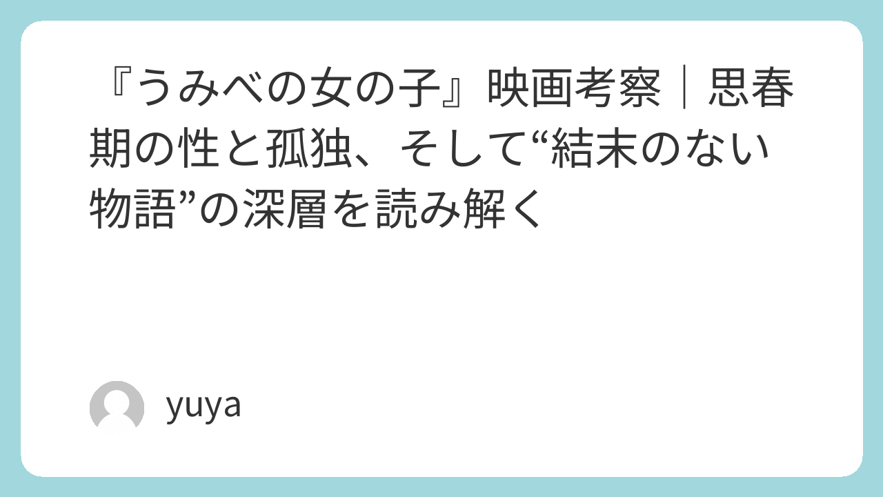 『うみべの女の子』は、「恋愛」「性」「孤独」といった思春期のテーマを大胆に描いた作品でありながら、それを安易に消費させない“余白”の多い映画です。観る人によって解釈が分かれるからこそ、深い考察が可能になります。